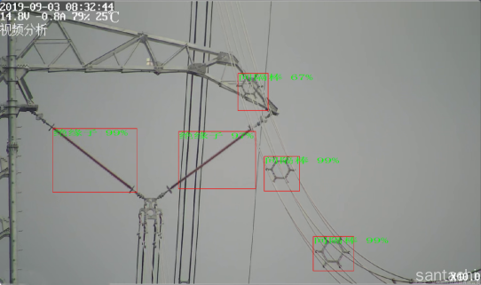 It is reported that Santachi monitoring equipment realized China's first AI intelligent identification visual online monitoring based on the acquisition of high-definition image quality, fully utilizing the advantages of artificial intelligence, integrating AI technology, identifying and analyzing image and video information, improving the operation and maintenance efficiency, and ensuring the safe and stable operation of overhead transmission lines, meeting the requirements of China Southern Power Grid Corporation in transmission line monitoring business-in Shenzhen Power Supply Bureau's 2019 video channel full coverage project.