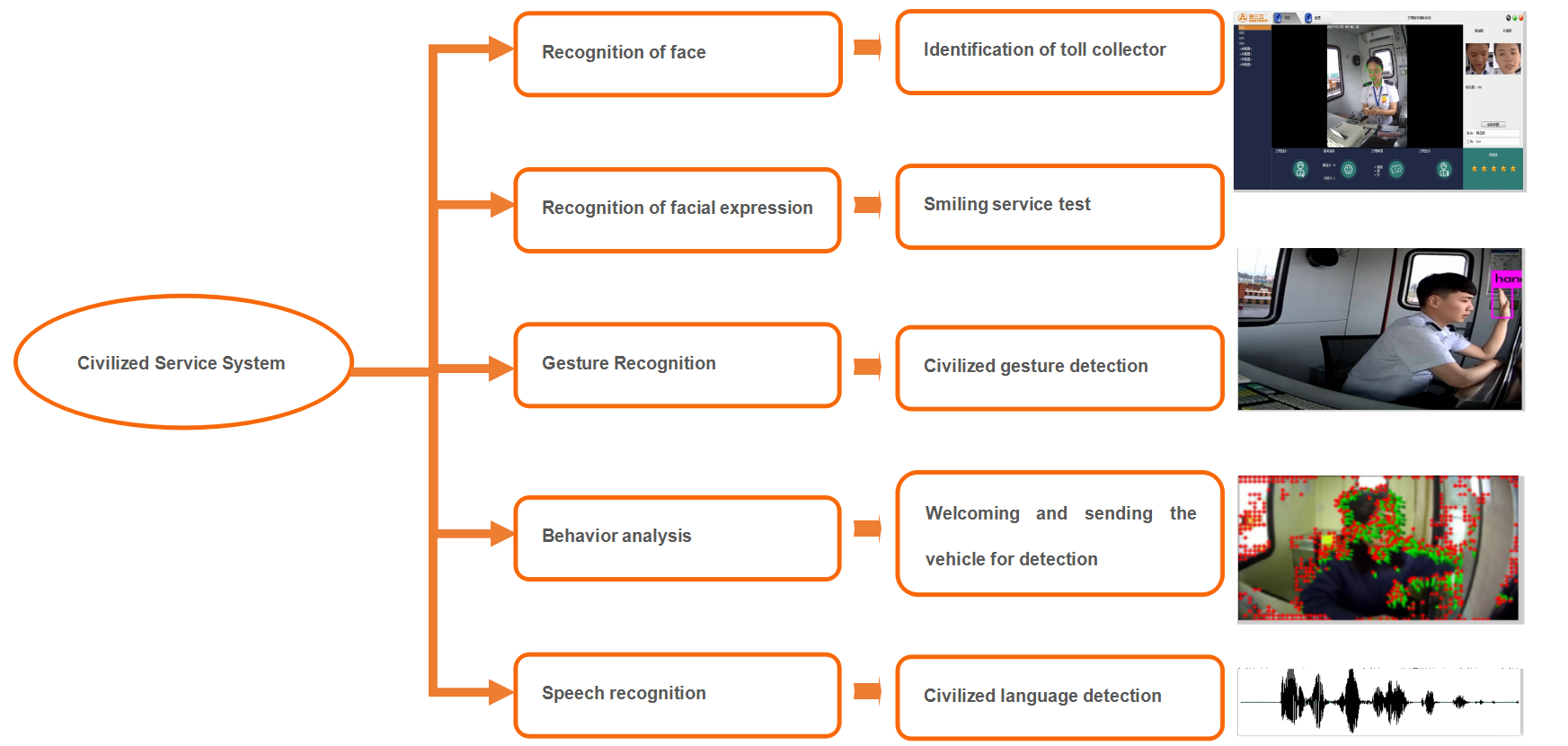The civilized service display terminal is installed in the toll booth and feedbacks the evaluation results of each toll collector in each service process in real time, which can prompt the toll collector to improve the service level in a timely and targeted manner.