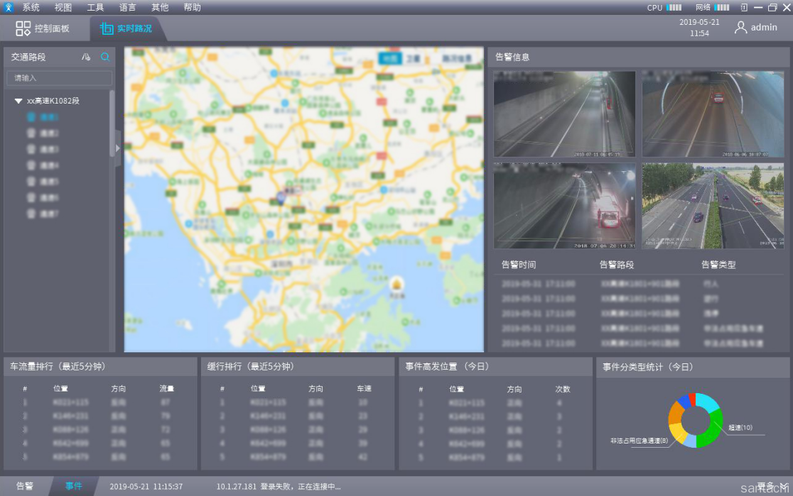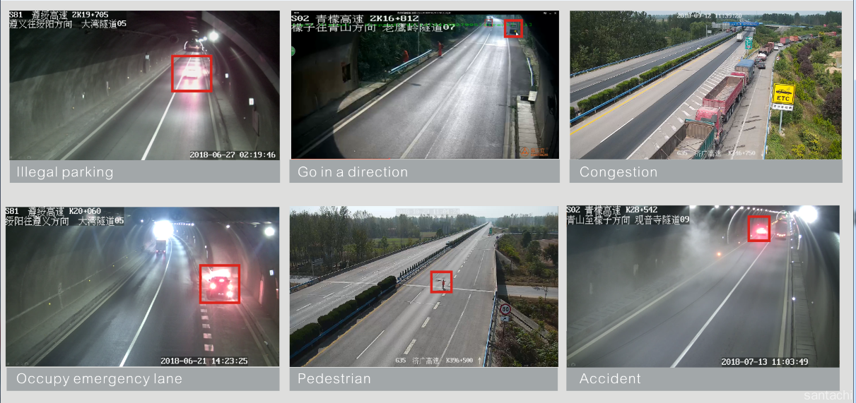 Traffic incidents --- Illegal parking, going in a direction not allowed by traffic regulations;Pedestrian crossing marking; throwing things, congestion, overspeed, low speed, illegal occupation of emergency lanes, large vehicles occupying small lanes, vehicle departures, dangerous vehicle identification