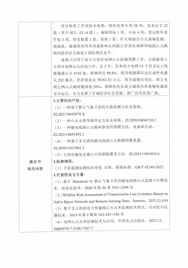 我司杨伟强作为第七完成人参与完成的“天地协同山火立体监测与风险评估关键技术及应用”项目拟提名2025年度海南省科学技术进步奖二等奖。