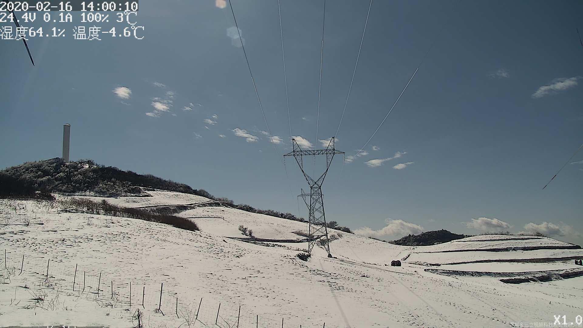 能见度低,线路及绝缘子上有 雪淞类覆冰 ,太阳能板有 积雪