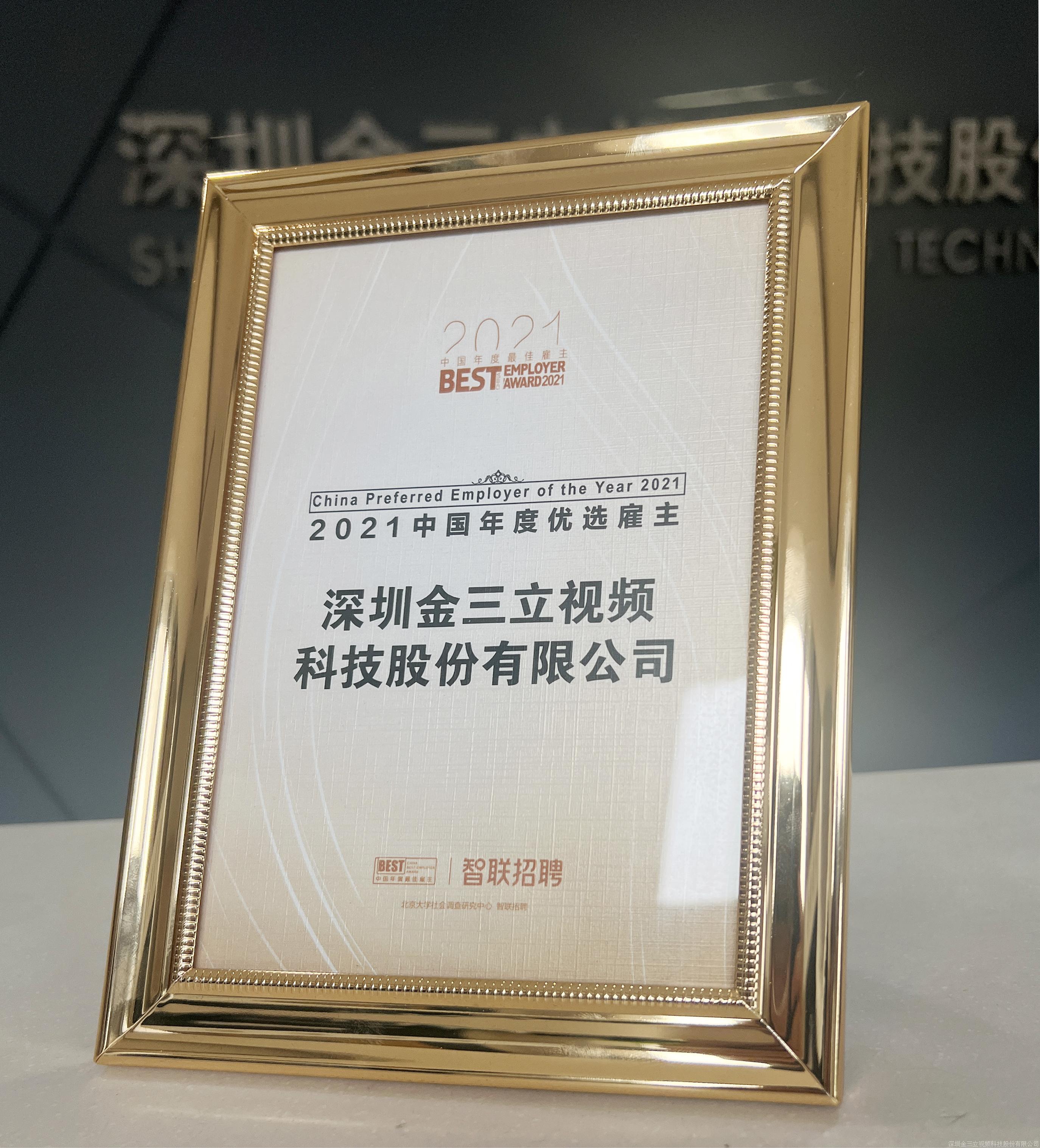 在智联招聘和北京大学社会调研中心联合发起的“2021中国年度优选雇主”评选活动中,金三立从众多受评企业间脱颖而出,喜获殊荣。