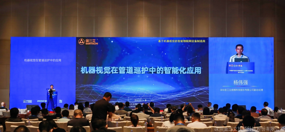 主场报告上,金三立副总经理杨伟强作题为 《机器视觉在管道巡护中的智能化应用》 的演讲,以机器视觉技术为基础,结合智慧物联,融合边缘计算,实时监测人员密集区、地质灾害及山火易发区、施工作业区的管道环境与人员状态,及时隐患预警, 实现管道立体化智能巡检 ,助力用户真正做到全场景无人值守。