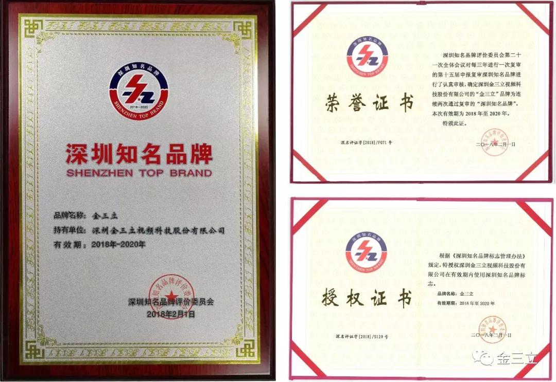5月9日,以“聚焦一带一路·共铸城市品牌”为主题的第二届深圳国际品牌周暨中国品牌日深圳站正式启动。大会旨在“坚定不移打造更具时代引领性的深圳知名品牌”,让更多的深圳知名品牌在“一带一路”建设中体现东方大国在品牌领域的话语权。 金三立 过关斩将,顺利 通过本届深圳知名品牌 严苛的初审和复评,再次荣获深圳知名品牌。